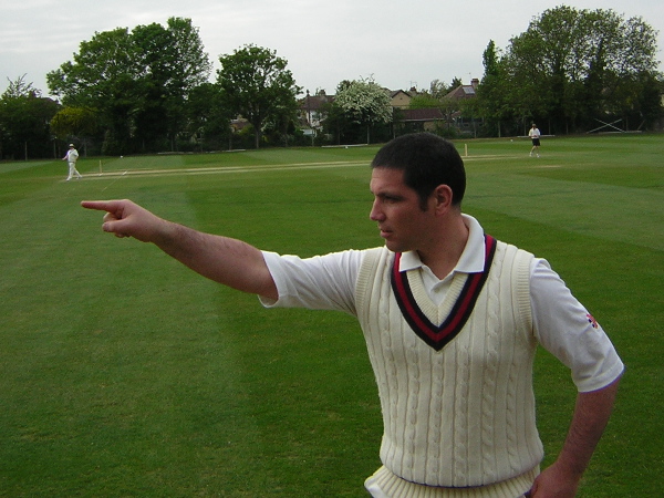 The first five balls of the Remnants innings produced drama enough for a whole match: a missed catch off Julius Rix resulted in a single and an injured wicket-keeper, after which Mark Henare was bowled for a duck. Julius was dropped twice more before in the first few overs before he was finally caught for for a rather scratchy 10. Tom Jordan (17) and Joe White (9) struck a few good blows, but 50/3 after 8 (eight-ball) overs and a longish tail to come had your President fearing the worst again. Martin Law, however, held the middle order together for a while, top-scoring with 24, despite losing Andy Owen when he was sent back and failed to regain his ground after calling for a single that Usain Bolt might just about have made with the wind behind him. When Paul Jordan (6) was dismissed trying a reverse sweep that he won't want to replay on the video and then Martin played 'round a straight one, the scene was set for another Remnants defeat. Or, to put it another way, a scenario was in place for an unlikely hero or two.