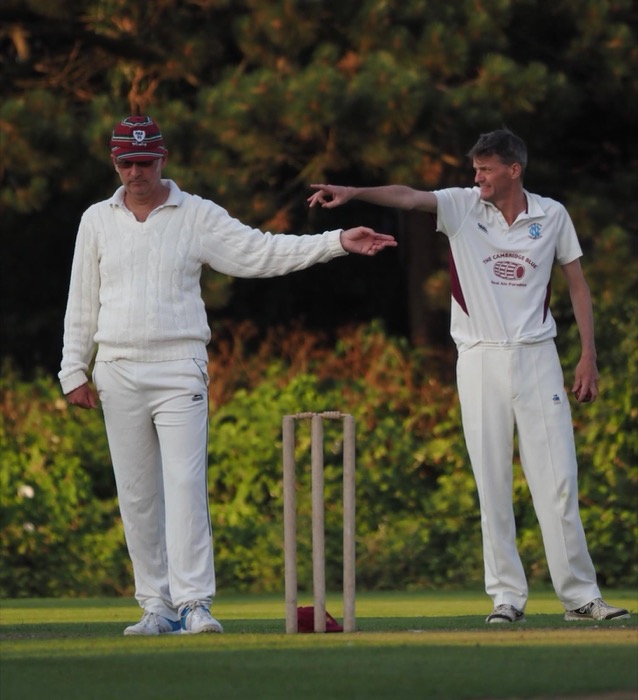 In the end it was sooner, with Cam called in having reached 32* off just 16 balls, after which Seb joined him upong reaching a more sedate 31* off 26 balls. NCI grabbed their chance, as they took three wickets in the next few overs; but, critically, while none of John Young (3 off 5 balls), Marcus Baker (8 off 10 balls) and Pete Ames (13 off 11 balls) lasted long, they all kept scoring at near enough the required rate - it's not wickets but dot balls which are fatal in twenty/20s, and we didn't allow many of those. That meant that new batters Anand Kairamkonda (16* off 15 balls) and Daniel Mortlock (6* off 7 balls), faced with the task of scoring 20 from the final 3 overs, weren't subjected to the pressure of having to hit boundaries, so they just played "tip and run". With the help of some kindly donated wides (all of which were outside the return crease, so unarguable), we started the final over needing just 2 for victory . . . which came rather anticlimactically with a no ball that induced some mild chuntering from the fielders (the strange implication being that the umpire should do something other than call it as they see it).