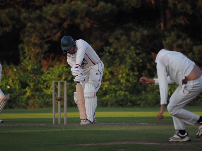NCI, upon winning the toss, unsurprisingly chose to bat first, and looked set to establish an early ascendancy: their number one played a series of effortlessly correct drives against Joe White (1/31), and then their number two punched his first ball from Daniel Mortlock (2/18) straight down the ground for a completely risk-free boundary. Joe's frustration only increased when an outside edge somehow flew over the short square boundary for six, although he did get a measure of revenge when an essentially identical mis-hit by the left-hander was well-held by John Young at deep point. Still, with NCI on 65/3 after 7 (eight-ball) overs, even a modest acceleration would be enough to get to 150-odd - hard to chase at the best of times, but surely unassailable with the likelihood of gloom before match's end.