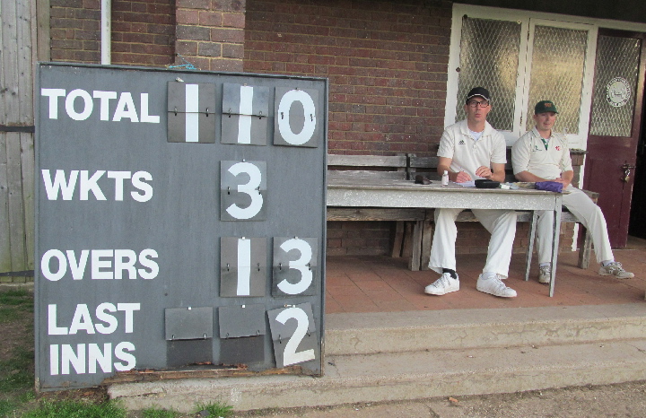 Skipper Chris Badger's batting order was largely predetermined by who had arrived at the ground in time for the start of Remnants' innings batting first. Kanwar (20 off 16 balls) of course took the belligerent approach to his sometime teammates before being bowled essaying another boundary. His opening partner Tom Serby struggled against the openers but found some fluency in and over "cow" (37 off 42 balls). CJ Barrie (17 off 15 balls) after a cautious start also opened his shoulders to good effect. Tom then ran out Seb Hammersley by calling him through for a single off his first ball, inducing umpire Quentin Harmer to suggest that Tom had earned himself report-writing duties - and so it turned out. Chris replaced Seb at the crease and a "run a ball" 16 saw Remnants to 117/5 . . .