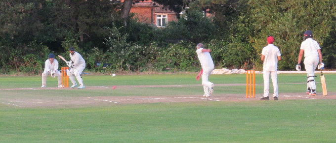 With three retirements and 171 from our 120 balls, it was looking like our match to lose. We got off to a good start with Tim Simmance (0/18) and Paul Jordan (1/41) opening our defence, but after an initial breakthrough with Seb taking an excellent catch on the boundary to get rid of the Coton opener who looked very tidy. Unfortunately, this brought in one P. Gotherwal, who confirmed that the outfield was indeed very fast by immediately scoring 4 fours. This put their score rate above the remnants innings after 2 overs and suddenly the 171 wasn't looking like such a high score. Remnants slowly turned the screw with some good bowling and great deep fielding from Chris, Seb, Stephan and JP. Slowing things down by bowling Arad and myself also helped especially with the retirement of P. Gotherwal. Switching to even slowing bowling at the other end (now with the pink ball in the fading light) led to the next breakthrough. A top edge off Iqtedar Alam (2/32), was skyed high into the air. Quentin and Arad both went for it, with Arad shouting "Mine!" at the last minute, taking the ball cleanly . . . but unfortunately hit Quentin in the head in the ensuing collision. Despite the blow to the head, Quentin (2/38) bowled the next over. The light continued to fade, so much so that the deep fielders, especially Tim, who was a ball magnet for the last 3 overs, had to be constantly guided by Cameron from behind the stumps. A steady fall of wickets and a mounting required rate meant that when I again indulged myself, by bowling the last over, the game as all but won. With the fading light I was able to pick up a late wicket with Coton falling 13 runs short on 158/7. A thoroughly enjoyable game not only because we won but also as the opposition was great and the weather perfect despite the shorter evening.