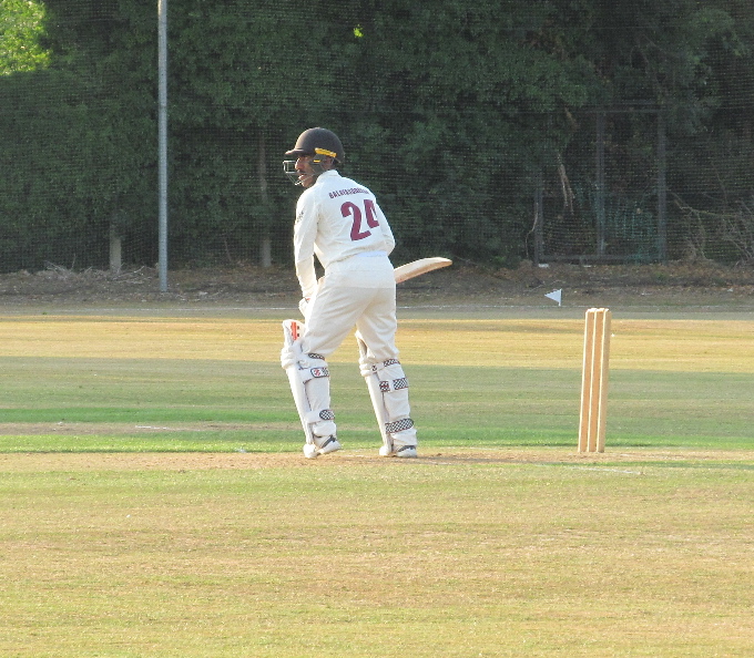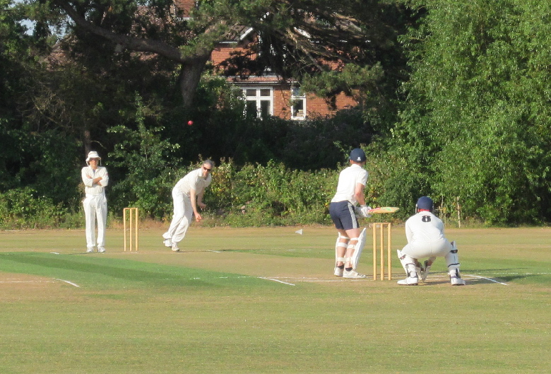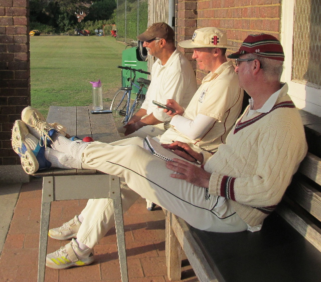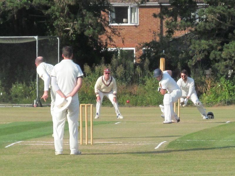Still, we had the perfect start when Joe White (3/17) bowled the Sharks opener with the first ball of the game, doubling his season's wicket tally in the process. (No suggestion that Joe hasn't bowled well this year, and he's been our most economical bowler, so presumably has just been unlucky.) At the other end Tim Simmance (0/24) recovered well after starting with two big wides, and would have had a wicket if he'd held onto a fairly simple return catch. After 7 (six-ball) overs the Sharks were struggling on 33/3, but from then on pretty much everything went wrong for us. Perhaps most important was that the ground fielding fell apart: half the side had arbitrarily opted to use their feet to stop the ball; three or four boundaries went through the fielders' hands; and even having gloves was of only limited help as we conceded 7 byes. Daniel Mortlock (1/26) ended up pretty frustrated after generating a huge number of edges and then seeing two catches go down. At least it wasn't a team-wide case of dropsy as in the Grantchester game, as we did take four catches: 'keeper James Robinson held onto two fine edges (one sufficiently thin that the batter genuinely seemed to believe he hadn't hit it); Faruk Kara made a nice grab at gully despite not having seen the ball until it was about a yard away from him; and Joe took a well-judged overhead grab falling backwards (which induced the batter, the ubiquitous Sumit Sahai, to claim Joe had somehow grounded the ball as he fell back, despite the fact it was the back of his hand which was on the ground, something he was still chuntering about after the end of the game). Perhaps more important, though, was that our ground fielding fell apart: half the side had arbitrarily opted to use their feet to stop the ball; three or four boundaries went through the fielders' hands; and even having gloves was of only limited help as we conceded 7 byes. Paul Jordan (2/28) and Neeban Balayasoderan (1/7) did take some late wickets - but they were too late to prevent Sharks posting a healthy total of 137/8.
