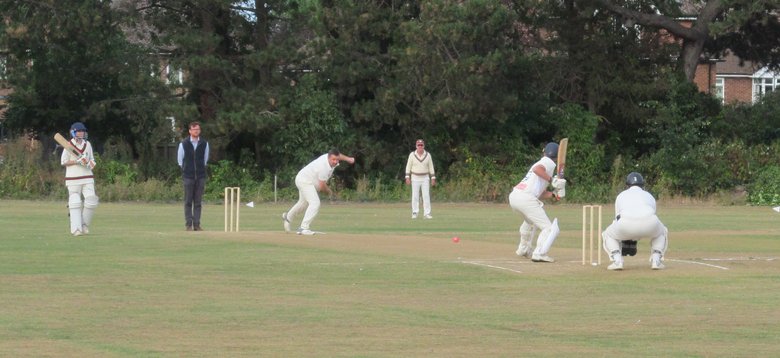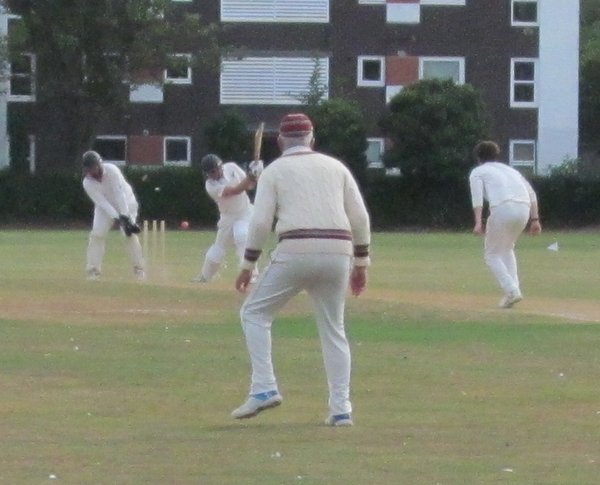 Having lost last night after trying the effective late-season tactic of arriving late to bat first, we took the opposite approach this evening, agreeing to bowl first against the Woozlers, nominally in order to get the game started promptly - but of course really to engineer a win. (Didn't work.)
