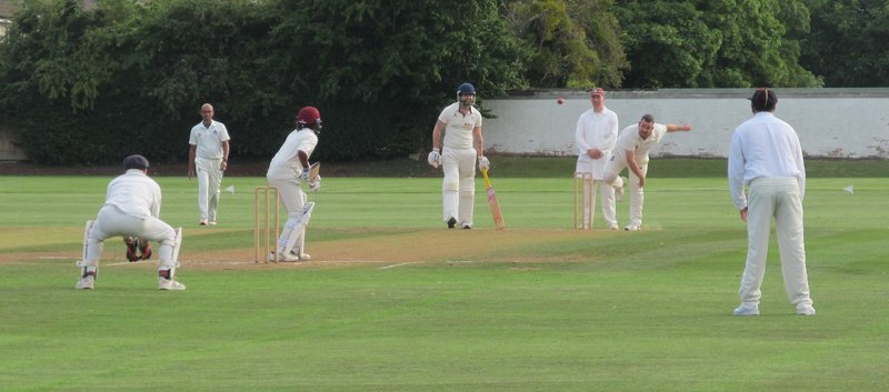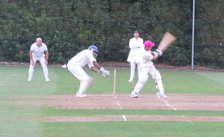Our first victory was winning the toss when THCH captain Cam Petrie called incorrectly - his shoulders visibly slumped when, predictably, he was informed that we would be batting first. Still, THHC began well, as tight bowling from Iqtedar Alam and Ben Stone (their one genuine Remnants ringer this evening) allowed our openers James Robinson and Lahiru Wijedasa just 9 runs off the first 2 (eight-ball) overs. Lahiru (3 off 3 balls) was also dismissed during this passage of play when he and James went for a second run to a fielder who didn't look particularly likely to throw down the stumps . . . and, well, you know the rest. James (35* off 32 balls) at least put this behind him as he powered to retirement, hitting huge six to take him to the maximum possible score. Kanwar Singh (30* off 16 balls) and Martin Heginbotham (30* off 22 balls) raced to retirement even faster, taking us past the hundred mark in the 10th over without any further wickets. We then suffered a bit of a collapse, as only Matty Wills (15 off 8 balls) and Ev Fox (11 off 9 balls) even made it to double figures after this early onslaught. Not that it really mattered, though, as our final score of 157/5 was surely enough in a retirements game.