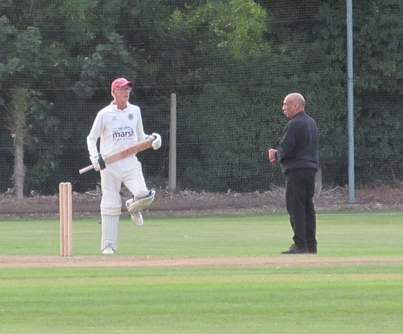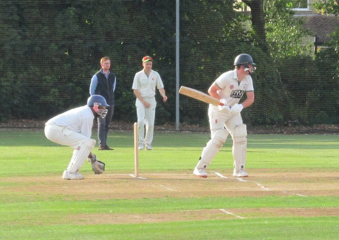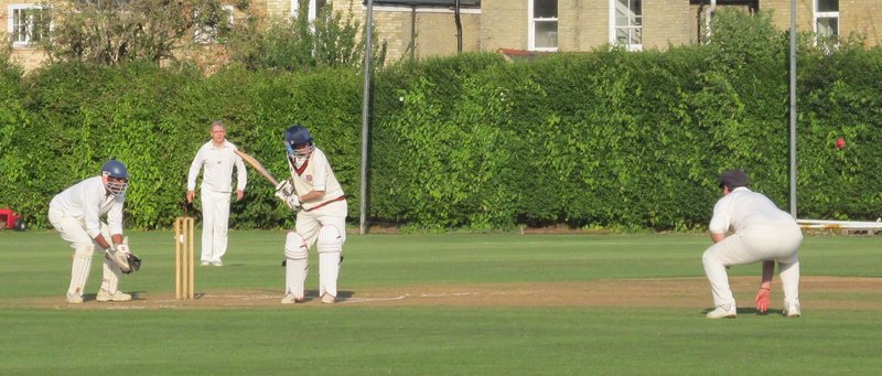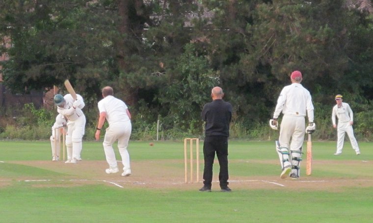The instructions to our strong top order was to make use of the higher than usual retirement score of fifty and play proper innings: our best chance of a win was to have a couple of batters get themselves in and then bat through. This proved to a bit more challenging than we'd hoped, as the The Woozlers' pre-match talk about being short of bowling and "only having leg-spinners" proved to be false on both counts: while they did only use five bowlers, all bar Quentin bowled at a decent clip, which broadly confirmed medium pace was the best option for this wicket. Despite the early departure of Seb Hammersley (26 off 20 balls) we were definitely in the hunt with the score 75/1 after 11 overs: scoring 79 off the 54 remaining deliveries wasn't going to be easy, but with two set batters at the crease we could reasonably hope for an acceleration . . .